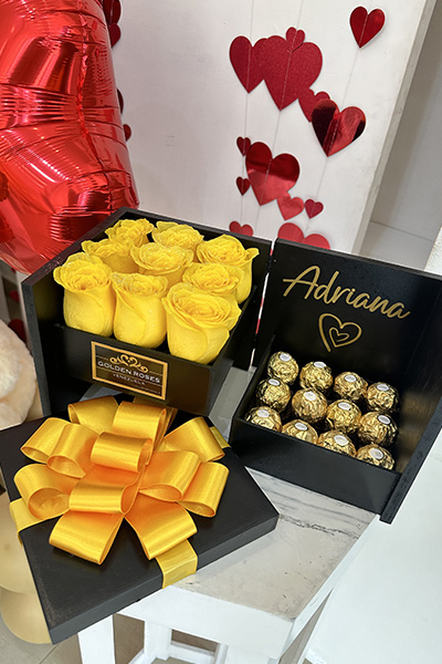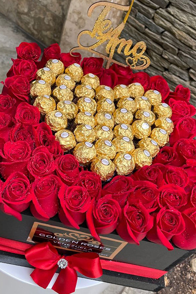 20 Rosas, 20 Ferrero, Vino, Nutella 371 grs, 1 Hershey’s