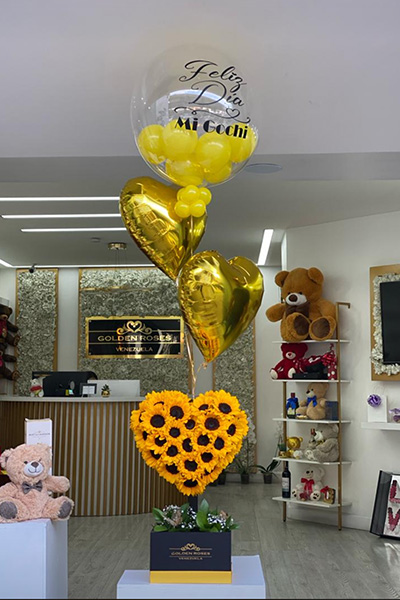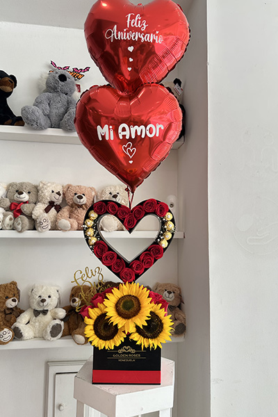 20 Rosas, 3 Girasoles, 8 Ferreros, Topper, 2 Globo