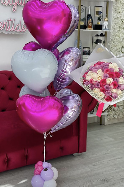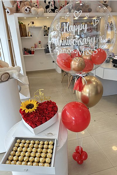 40 Rosas, 1 Girasol, 48 Ferreros Topper, Bouquet de globos