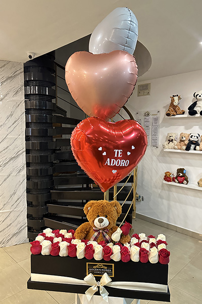 40 Rosas, Peluche 30cms, 20 Ferreros, Jp chenet g, 2 Globos, Fotos