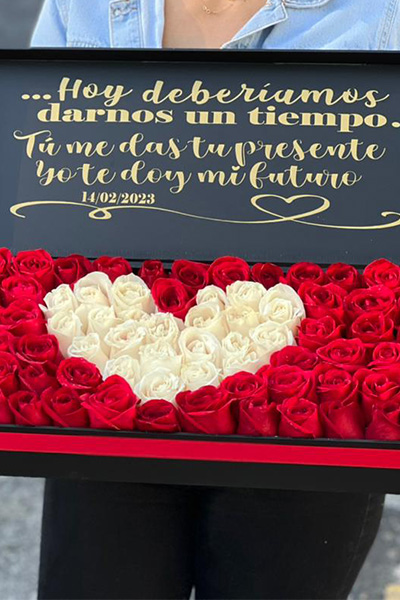 Caja con tapa, 80 Rosas Bicolor, Vinil Personalizado