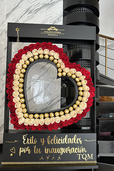 Corazon 50 rosas, 35 Ferreros(sin-peluche)